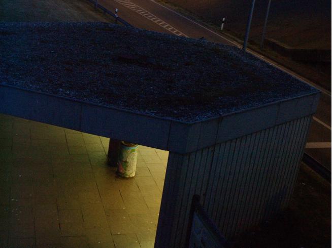 Nördliches Ruhrgebiet, im Bus nach Einbruch der Dunkelheit. Es ist Sommer,