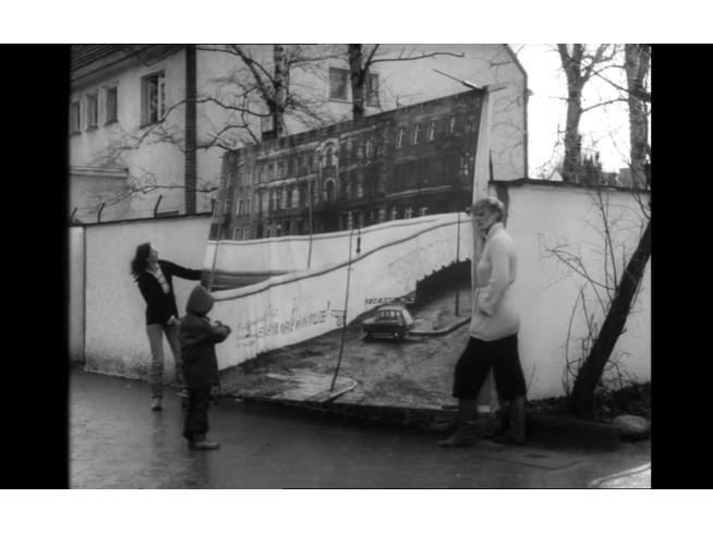 In ihrem Film Die allseitig reduzierte Persönlichkeit begleitet die Filmemacherin Helke Sander die Fotografin Edda durch ihren Alltag: wie sie Negative in ihrem Badezimmer entwickelt, ihr Kind ins Bett bringt, enervierende Gespräche mit Redakteuren führt, mit ihrer Frauengruppe über das nächste Projekt diskutiert und bei offiziellen Veranstaltungen ihrem Fotojournalistenjob nachgeht. Und das alles vor der schwarzweißen Kulisse Westberlins im Jahre 1978. Eine Stadt, die durch die Mauer ebenso geprägt ist wie durch zahlreiche Baustellen. Man sieht: Den Grenzübergang Bornholmer Straße, ein Motorrad im Grenzstreifen vor der Oderberger Straße, das Kottbusser Tor von der Skalitzer Straße und vom Kottbusser Damm aus kommend. Ein weiterer Still zeigt Edda wie sie ihren Kolleginnen ihre Fotoideen vorstellt, die sie für eine gemeinsame Plakataktion entwickelt hat. Die Fotografinnen haben den Wettbewerb "Fotografen sehen ihre Stadt" gewonnen, der im Rahmen eines Künstlerförderprogramms ausgerufen wurde. Die Gruppe diskutiert stundenlang, ob sie mit ihren ungeschönten Motiven der Stadt, auf sie Dreck, Ruinen und Mauern festhalten, nicht der Zensur der Politiker zum Opfer fallen (der Wettbewerb sollte ursprünglich der Imagepflege dienen).