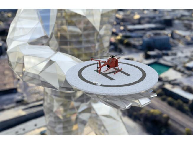 Das 175 m hohe Bauwerk ist ein Hybrid aus Gebäude und Statue und ist dadurch auch die zweit höchste Statue der Welt, nach der Statue der Einheit in Indien. Im Kopf befindet sich eine sky lounge, diese ist sowohl vom Boden aus, als auch mit dem Helikopter über die rechte Hand erreichbar. Die linke Hand winkt Richtung Potsdamer Platz. Die Fassade erzeugt durch die gefalzten Oberflächen der Fassadenelemente bei jedem Sonnenstand ein anderes Licht- und Schattenspiel, bis hin zu Moiré-Effekten. Die Statue of Streletzki ist die Landmarke an der Schnittstelle zwischen der inneren und äußeren Stadt, von den Neuköllner*innen liebevoll ‘Ekke’ genannt.