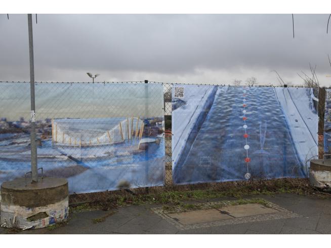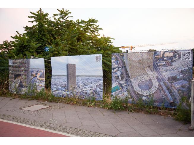 PROBLEM PROPERTY ist ein Kunstprojekt zur kritischen Begleitung aktueller Berliner Bauprojekte, das mit konkreten Gegenvorschlägen zum Erweiterungsbau des Estrel Hotels in Neukölln begonnen hat. Obwohl Bauvorhaben häufig weitreichende Konsequenzen für das Stadtbild mit sich bringen, finden die sie ermöglichenden Weichenstellungen oft unter Ausschluss der Öffentlichkeit statt. Die Initiator*innen wollen mit ihren Plakataktionen die entscheidenden Fragen zu diesen Bauvorhaben in die Öffentlichkeit tragen und damit verhandelbar machen: Für wen sind die Gebäude zugänglich? Wer kann sich die Miete leisten? Wie sind die architektonischen Entscheidungen zustande gekommen? (Die deutliche Überschreitung der Traufhöhe (also die maximal erlaubte Bauhöhe im jeweiligen Stadtteil) beim geplanten Estrel Tower in Neukölln ist zum Beispiel ein Indiz für die engen Verflechtungen von Wirtschaft und Politik). Die entwickelten Gegenvorschläge werden als digital erzeugte Renderings auf Bannerstoff gedruckt und im öffentlichen Raum am jeweiligen Baugrundstück an den Bauzäunen angebracht. Es sind fiktive Architekturen, die sowohl visionär als auch dystopisch sind. Sie können im positiven Sinne die Fantasie beflügeln, aber vor allem entlarven sie die großmaßstäblichen Dimensionen, mit denen diese Bauvorhaben einhergehen, sowie die luftigen (Marketingsprech-)Versprechen, mit denen sie angepriesen (und fatalerweise durchgesetzt) werden. Es folgen die Werbetexte der Counter Proposals für den Estrel Tower: