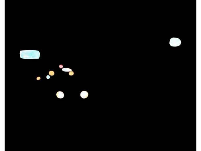 Einzelne Lichtpunkt und ganze Lichtzüge, sternchenförmige Lichter und Lichtlinien.