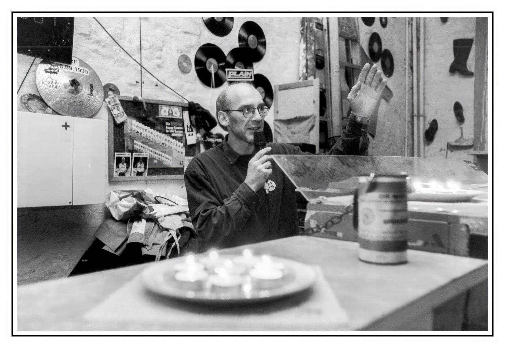 RG: Jain, man konnte mit den Leuten reden, denn man hat ja auch Verbindungen zur Presse gehabt. Nicht nur positiv, auch negativ. Wir haben ja auch sehr viel Geld selbst erwirtschaftet. Ich kann mich erinnern, dass wir, als ich die Mission übernommen habe, einen Etat von 10.000 Mark hatten. Als ich aufgehört hatte, waren wir bei über 125.000 Euro im Jahr, die wir selbst erwirtschaftet haben – über die Veranstaltungen und die Club Nächte. Jedes Wochenende Freitag und Samstag war da Musik mit Bands aus ganz Deutschland, die unbedingt in der Mission auftreten wollten. Für einen Kasten Bier. Die sind aus Stuttgart, aus Düsseldorf, aus München gekommen, nur um einmal in der Mission auftreten zu dürfen. Und als Bezahlung gab es einen Kasten Bier. Heute unvorstellbar. Aber die sind gerne gekommen.