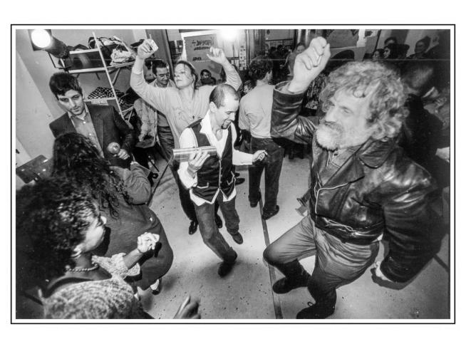 AU: Ich habe letztens den Film „Alles muß raus“ [Irene Bude und Olaf Sobczak, 1999] gesehen: Da trittst du auf und sagst nach dem Umzug in die Kamera, dass ihr ja auch „nicht pflegeleicht“ gewesen wärt. Das fand ich ganz schön und mir ist aufgefallen, dass ja beides sehr wichtig für das Projekt war: Einerseits, dass ihr widerspenstig bleibt und nicht einem Anpassungsdruck erliegt und andererseits aber auch die Zentralität und die Lage am Hauptbahnhof, die euch auch dadurch genommen wurde. Man wollte euch weghaben.