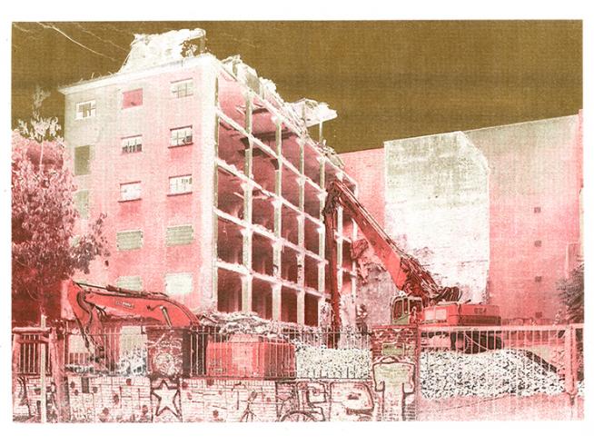 Thomas Monses Ninja Machiyasübrig gebliebene Haussilhouetten, die sich auf den benachbarten Fassaden abzeichnen und erkennen lassenhaben wir bereits einmal bei 99% Urban gezeigt, nun hat er mehrere Editionen dieser Motive mit einem Risographen gedruckt, die wir exklusiv bei 99% Urban zeigen und zum Verkauf anbieten.
