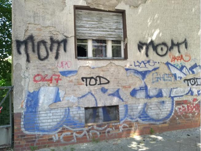 BUS126 ist in West-Berlin, in Lichtenrade, groß geworden und schildert in Enemy Kids seine Jugend. Die Fotos von Jo Preußler sind bei einem gemeinsamen Spaziergang 2022 durch Lichtenrade entstanden.