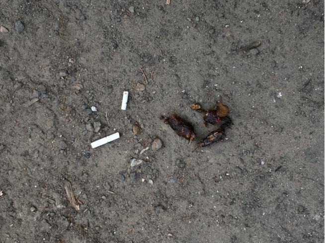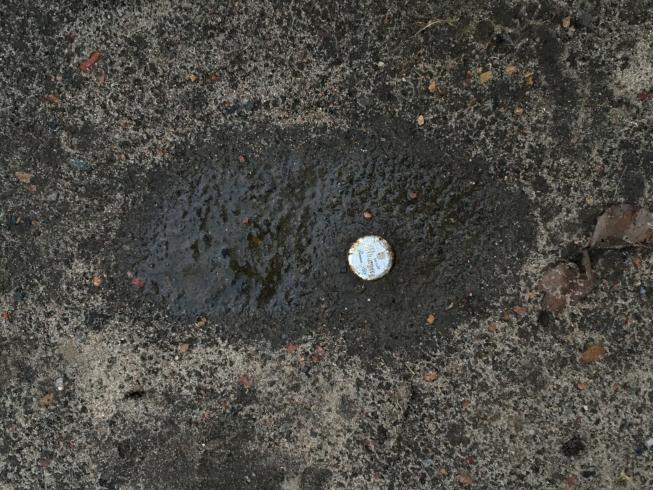 Warum heißt es „and Artist Unknown“? Soll das auf dem Boden fotografierte Etwas etwa Kunst sein? Ein Kronkorken, ein Stück Plastik, Kabelbinder oder auch nur ein Stein, der aus der Reihe tanzt, oder zwei Blätter, die übereinander liegen? Ja, denn die Fotografien von Michael Disqué schärfen den Blick für den Boden genauso wie für die fokussierten Objekte und deren temporäre Allianzen. Es entsteht eine Poesie des Untergrunds, des Bodens, der von unterschiedlichster Beschaffenheit ist. Man kann erkennen: geharkte Erde, Pflastersteine, Betonboden, Wiese. Darauf liegen Dinge, die mit dem Boden eine ganz eigene Kombination ergeben. Es sind Fundstücke, die nicht arrangiert, sondern entdeckt werden. Momenthaft werden sie festgehalten, dann bleiben sie zurück und der Fotograf zieht weiter. Das Ergebnis sind Abbildungen, deren Inhalt sich an der Grenze zum Nichts bewegt, weil die festgehaltenen Dinge so ephemer sind, sich die künstlerische Geste auf das Finden und das Aufwerten des Alltäglichen beschränkt und die Gegenstände zum Teil kaum auszumachen sind.