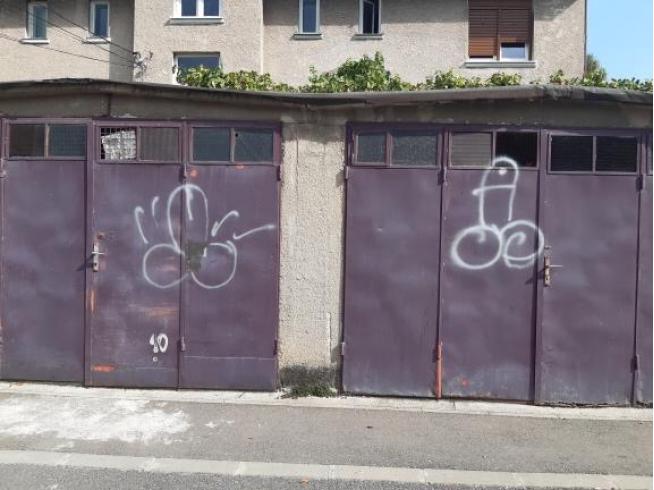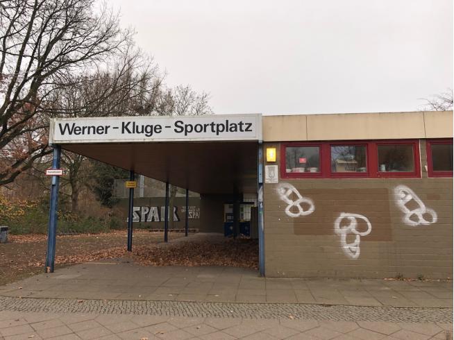 Sechser Inflationär verbreitet: gepinselte Sechsen auf temporärem Stadtmobiliar.
