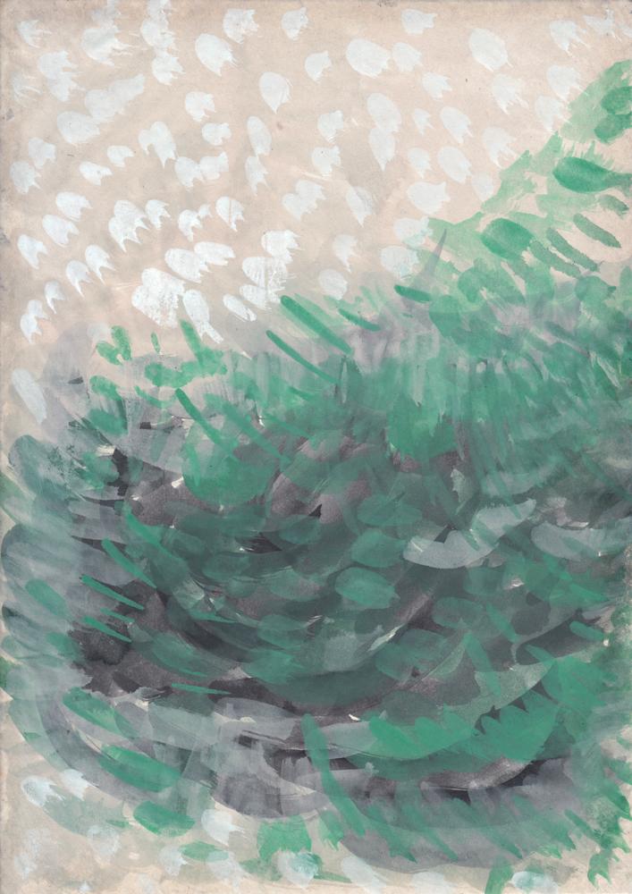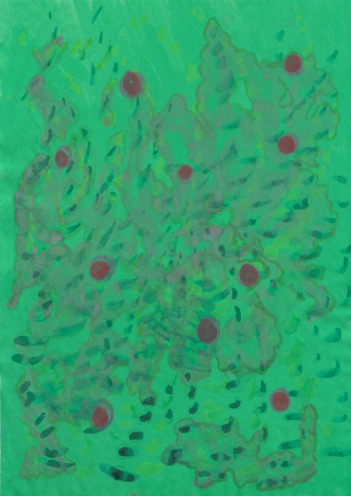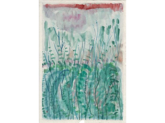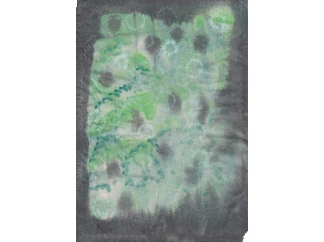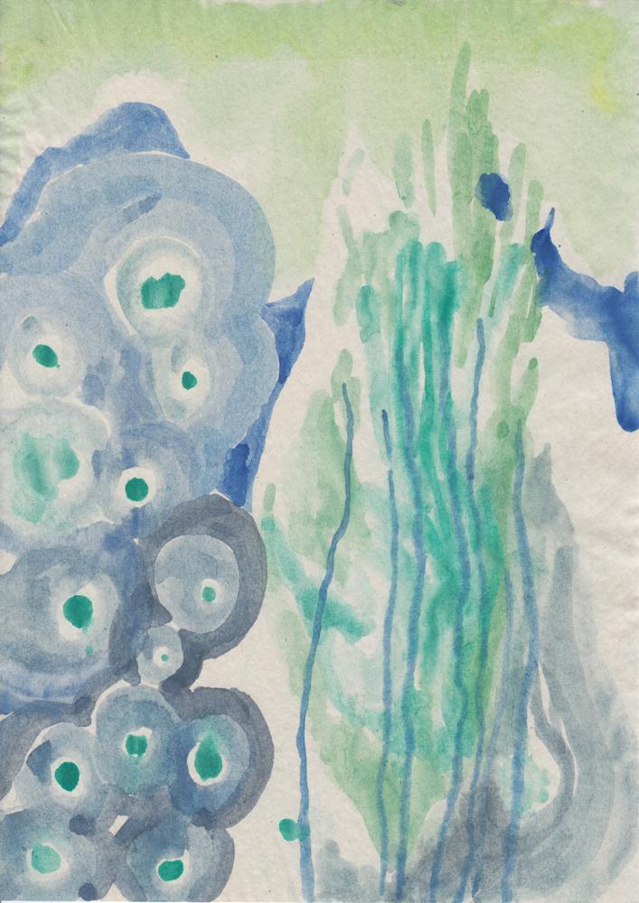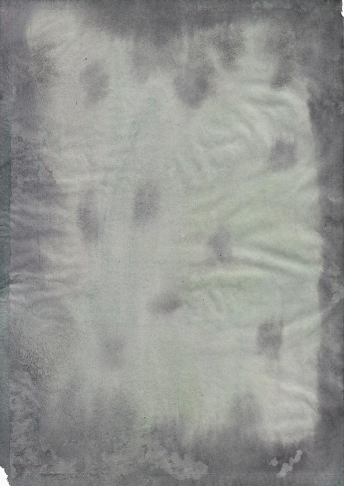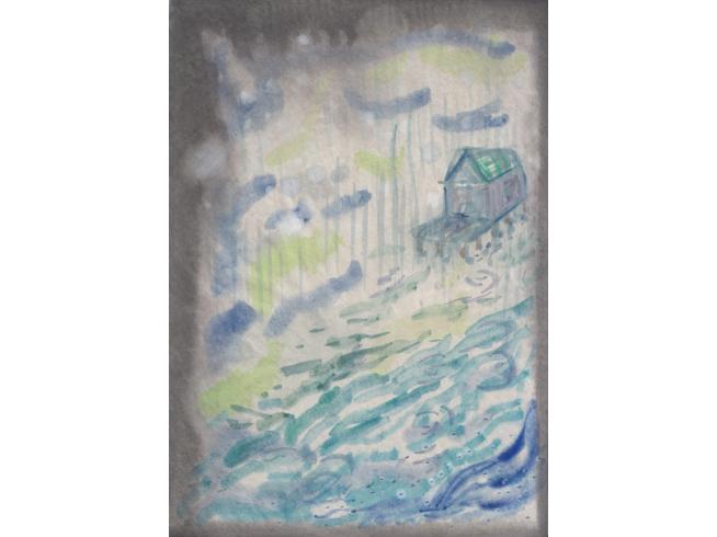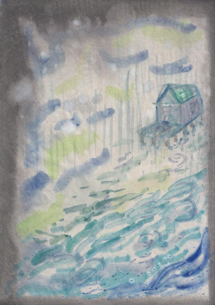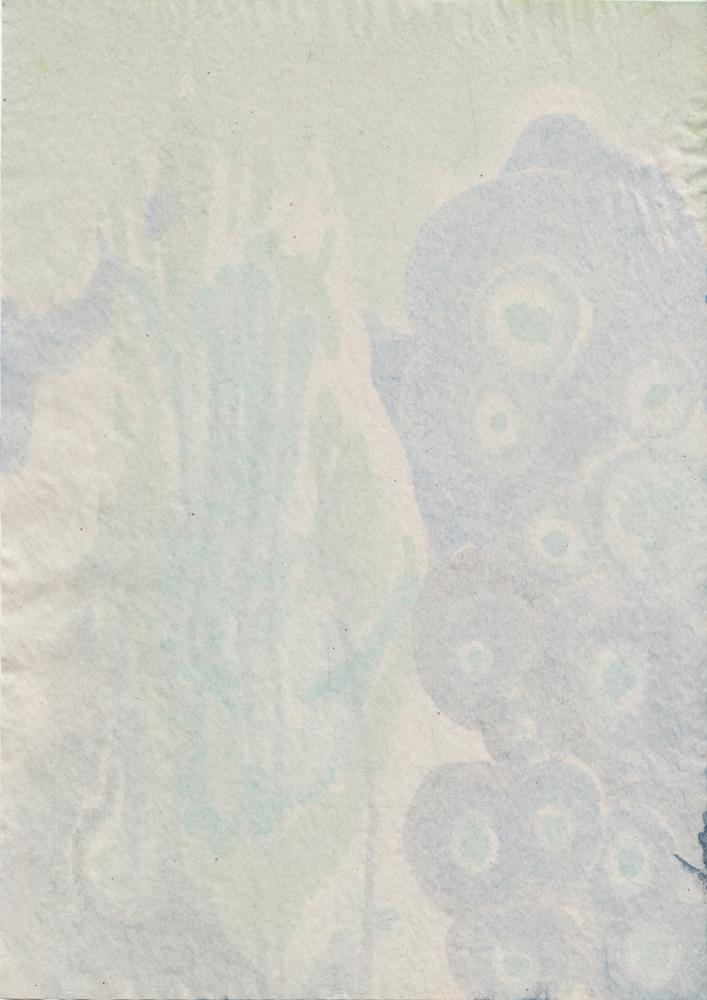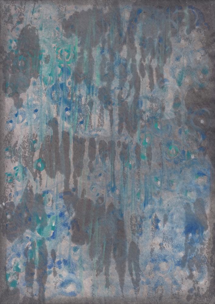 Die Serie NOLA (New Orleans) entstand aus Wasserfarbe und Aquarell auf Papier, 29 cm x 21 cm. So wie die allgegenwärtige Feuchtigkeit und Nässe durchdringt die Farbe das Papier. Gezeigt wird zuerst die Vorderseite, dann die Rückseite.