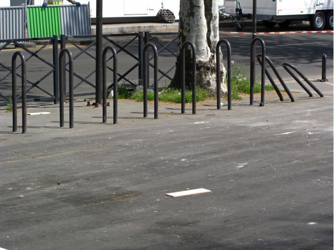 Sechser Inflationär verbreitet: gepinselte Sechsen auf temporärem Stadtmobiliar.