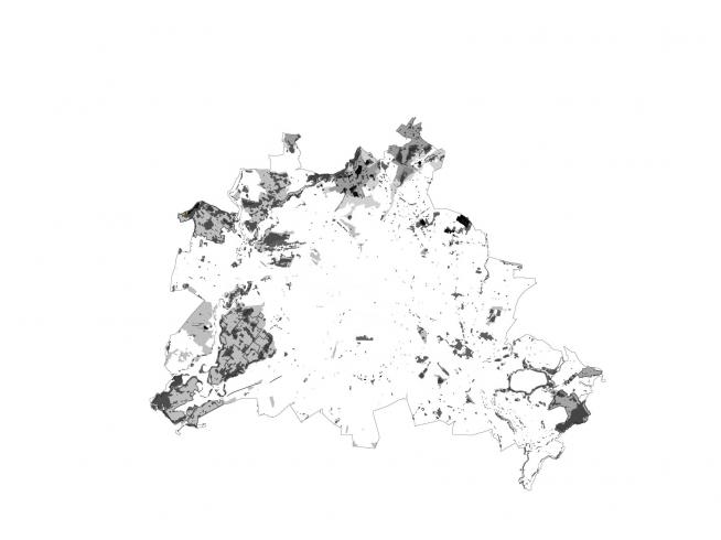 Um Schutzgesetze nicht länger als reine Restriktion aufzufassen, sondern um mögliche Potentiale aufzudecken, versuchen die folgenden Karten als Grundlage eines solchen Denkmodells die in Berlin entsprechend regulierten Zonen darzustellen und ihre jeweilige Bedeutung zu beschreiben. Untersuchungsgegenstand sind hierbei ausschließlich Schutzzonen, die kartographisch festgeschrieben erfassbar sind.