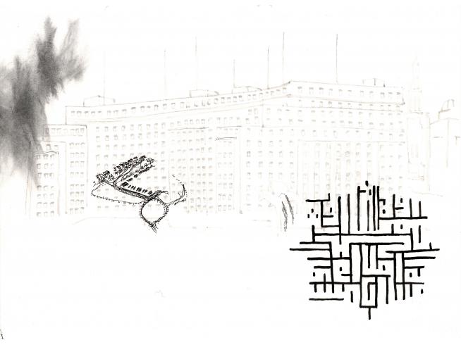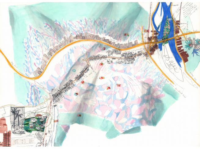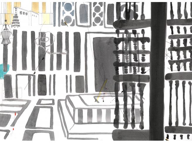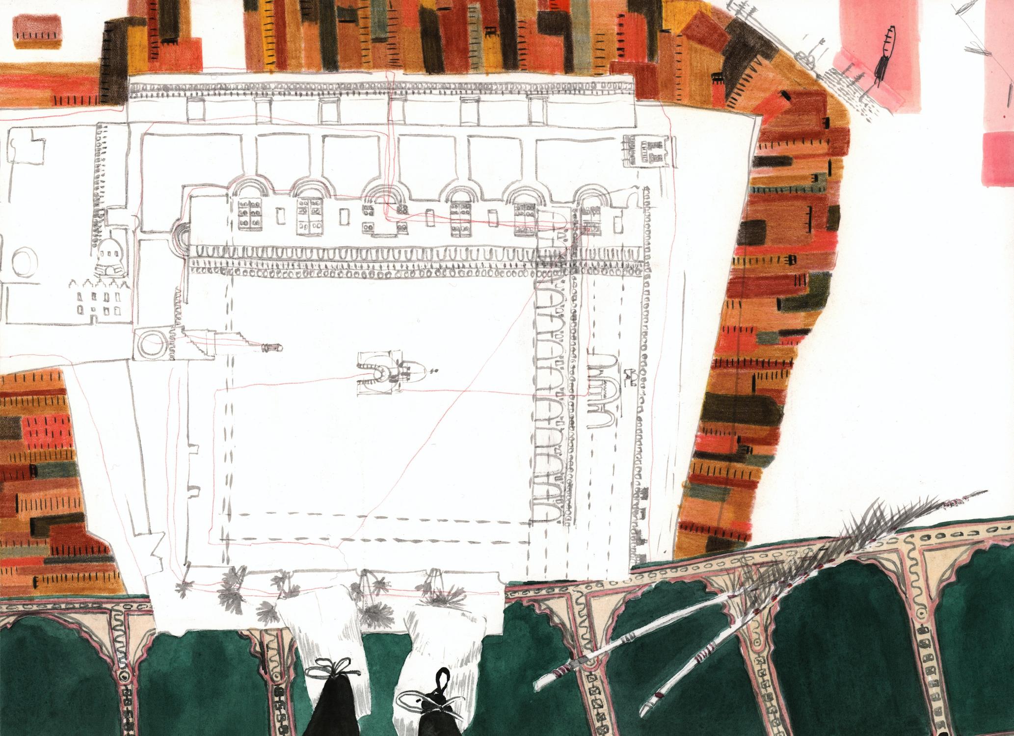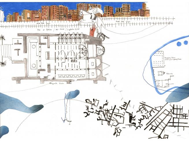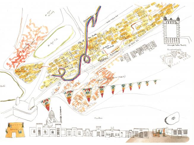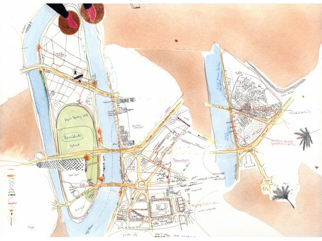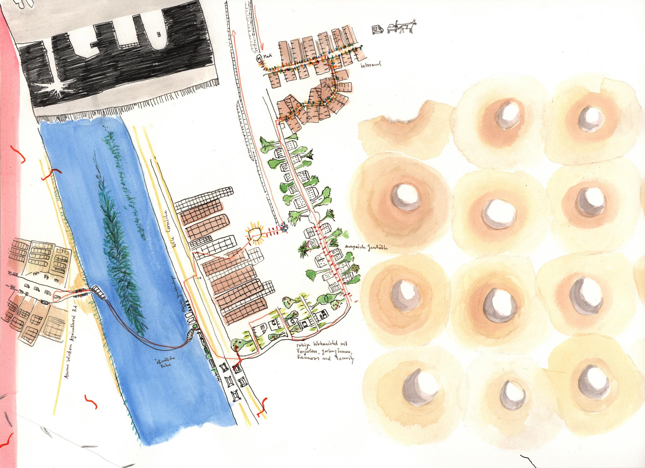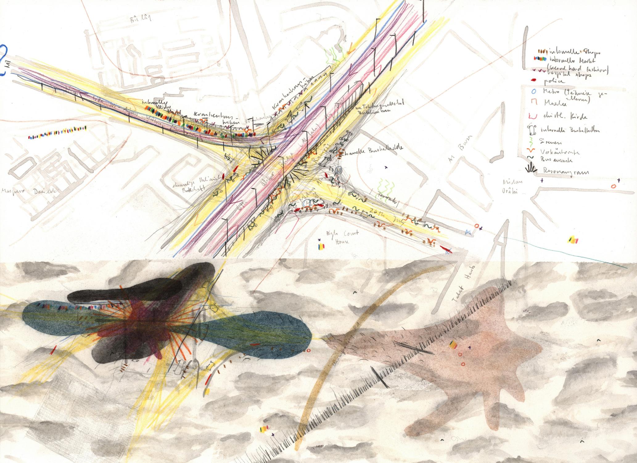 "2018 durchstreife ich mit Stift und Papier ausgestattet drei Monate lang die chaotische Metropole Kairo und kartiere "plan air" das grandios überbordende Nebeneinander von islamischer Tradition, mondäner Grossstadt, erfinderischem Alltagsleben und Spuren der Proteste des arabischen Frühlings 2011. Während dieser Zeit entstand das 80-teilige Zeichnungskompendium Cairo Notes, das mein Wahrnehmen, Denken und Orientieren unmittelbar abbildet."