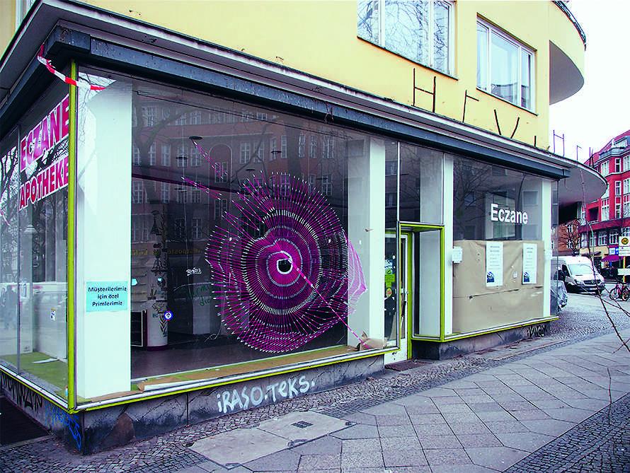 Birgit Hölmer: CUTS sind Interventionen an Schaufenstern leerstehender Ladenlokale. Sie bestehen aus Klebestreifen, die abstrakte Formen bilden. Durch die Anbringung auf Glas scheinen die CUTS je nach Lichteinfall wie im Raum zu schweben. Diese Interventionen habe ich seit 2015 meist unangemeldet durchgeführt. Seitdem sind Hunderte von CUTS in Berlin, anderen deutschen Städten und während Stipendienaufenthalten im europäischen Ausland entstanden. Die CUTS verbleiben nur für einen begrenzten Zeitraum bis sie von den Eigentümer*innen entfernt oder im Laufe der Zeit beschädigt werden oder sich von alleine auflösen.