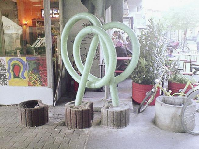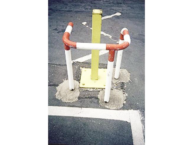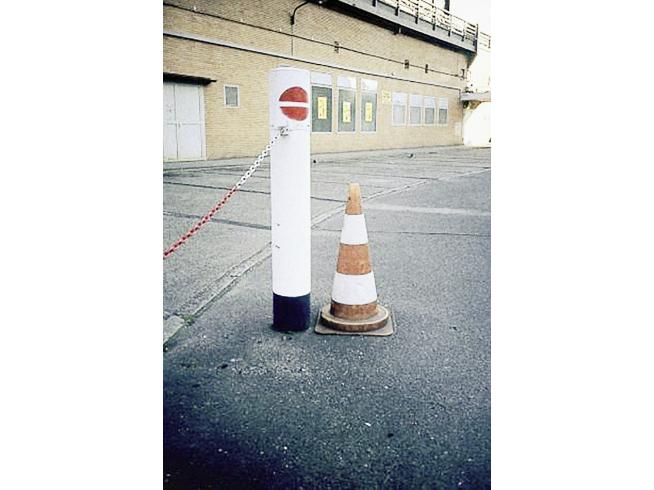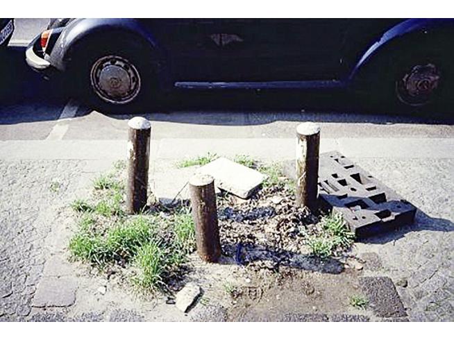 Ich will an dieser Stelle auf die mobilen Polyethylen-Poller nicht weiter eingehen, es gibt in Berlin einen Pylonenforscher: den Künstler Dida Zende, der in der Schwedter Straße eine Tankstelle als Galerie betreibt, die »FIT« heißt (»freie internationale tankstelle«). Auf dessen diesbezügliche Arbeiten und Webpages sei hier verwiesen. Mich interessieren als Pollerfor­scher vor allem die selbstgebastelten »Hausmeisterpoller«, also die Unikate – Poller, die es nur einmal gibt und die nicht selten aus Abfallmaterial bestehen, mithin Recyclingprodukte sind. Diese Hausmeisterpoller gibt es naturgemäß im industrialisier­ten Norden weniger als im armen Süden – in Kairo z. B., dort hat die Stadt- bzw. Bezirksverwaltung gar nicht das Geld, um alles »ordnungs-« oder »wunschgemäß« zuzupollern, so dass sich hier die Menschen selbst helfen müssen – und das sind meist die Hausmeister oder Hauswarte, auf Drängen ihrer Hausbesitzer bzw. Hausverwaltungen. In Nairobi, Bangkok, Manila, Bombay, Kairo und Djakarta (wo es nicht einmal Fußwege gibt) sind das dann nicht selten irgendwo kostenlos aufgetriebene Gefäße – halbierte Tonnen, Eimer, Fässer, sie werden mit Erde gefüllt und dann wird da ein Strauch oder ein Bäumchen reingepflanzt. Fertig ist der Poller, der die Weiterfahrt oder das Parken verhin­dern oder einfach nur eine Einfahrt markieren soll.