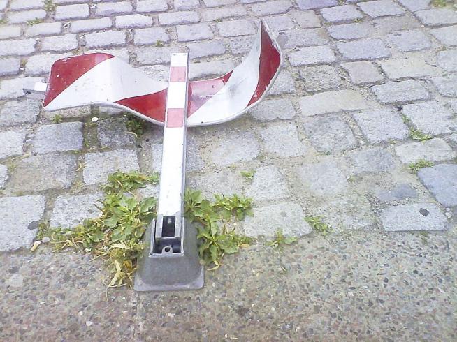 Der Hausmeister hatte solche Poller schon vor Jahrzehnten an der Auffahrt zur Zentrale der Berliner Volksbank bewundert – und zuletzt in Leipzig, wo man ganze Innenstadt-Abschnitte mit ihnen abgesperrt (dem Durchgangsverkehr entzogen) hat. Nur noch Anwohner, Lieferanten und Behörden, die mit einer entsprechenden Fernbedienung ausgestattet sind, können seitdem mit ihren PKWs bzw. LKWs in diese Abschnitte gelangen. Der Kreuzberger Hausmeister nimmt an, dass Leipzig sich dabei für das »Pollersystem CITY« der Firma Ziegler entschieden hat. In deren Katalog heißt es darüber: »Das Programm beinhaltet vollautomatische, halbautomatische (über Gasdruckfeder) sowie feststehende Verkehrspollersysteme aus Stahl (pulverbeschich­tet) oder Edelstahl mit Durchmesser 275 mm. Der Poller ver­trägt Anfahrgeschwindigkeiten bis ca. 20 km/h. Die maximale Aufpralllast beträgt 15.000 Joule. Daher auch geeignet für den Schutz von Konsulaten, Botschaften und Banken. Die Poller entsprechen der Norm NFP 98-310 Klasse E3. Eine große Auswahl von elektronischem Zubehör ermöglicht eine sichere und komfortable Bedienung der Anlagen in allen Anwendungs­bereichen. Alle Systeme können optional mit einer Heizung und Signalhupe ausgestattet werden.«