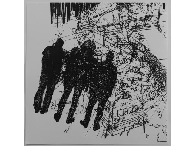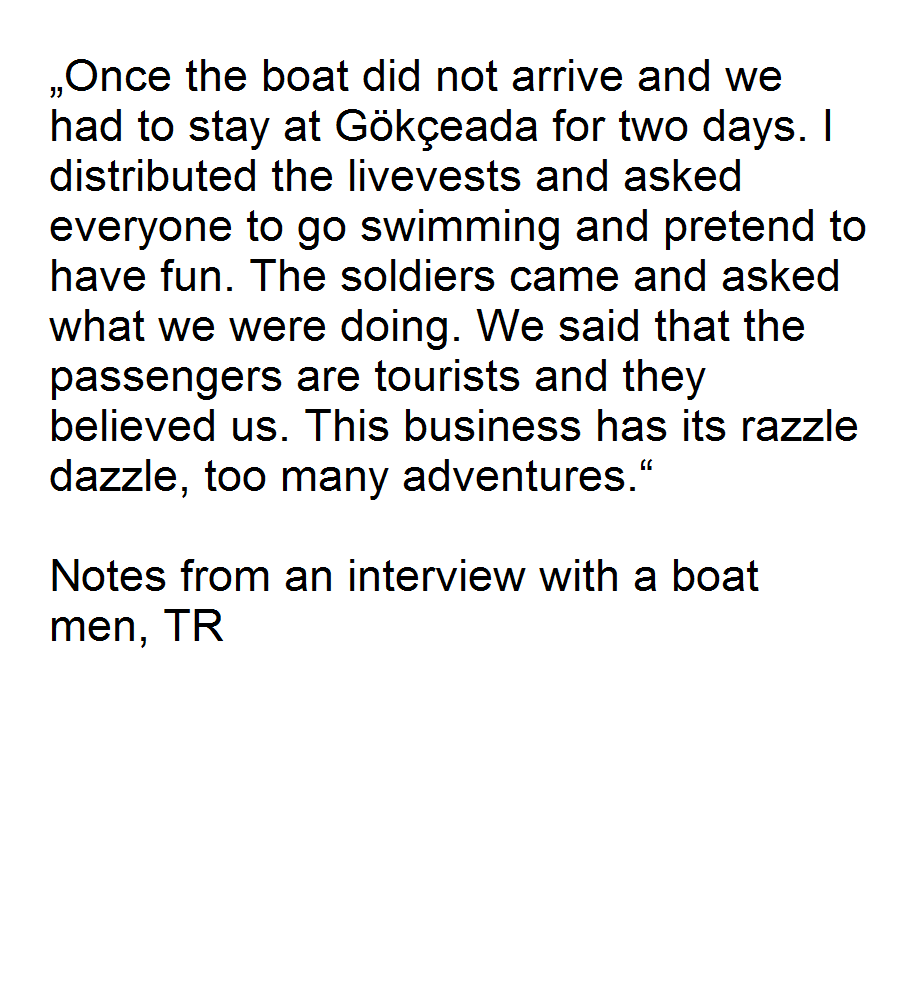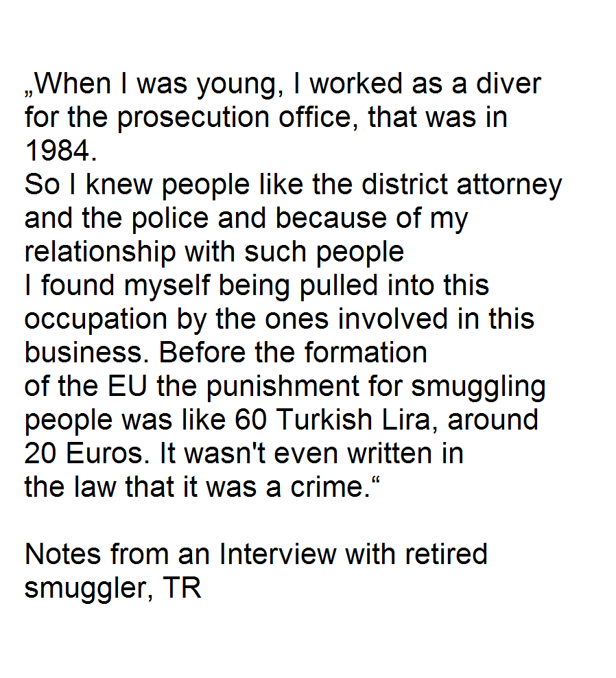 Diese Serie von Zeichnungen ist im Zusammenhang mit einem Projekt von Espace Surplus entstanden und ist Teil eines größeren Werkes. Hintergrund und Quelle dieser Arbeit ist eine umfangreiche Recherche, für die wir u.a. entlang der griechisch-türkischen Grenze reisten und in Berliner Archiven stöberten. Momentan entsteht eine Stadtführung für den Herbstsalon des Maxim Gorki Theaters. Auch hier greifen wir das zentrale Thema unserer Recherche – die kommerzielle Fluchthilfe – auf und verorten Sie unter zeitlichen und räumlichen Verschiebungen in Berlin.