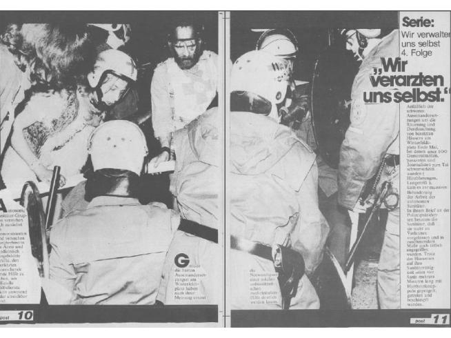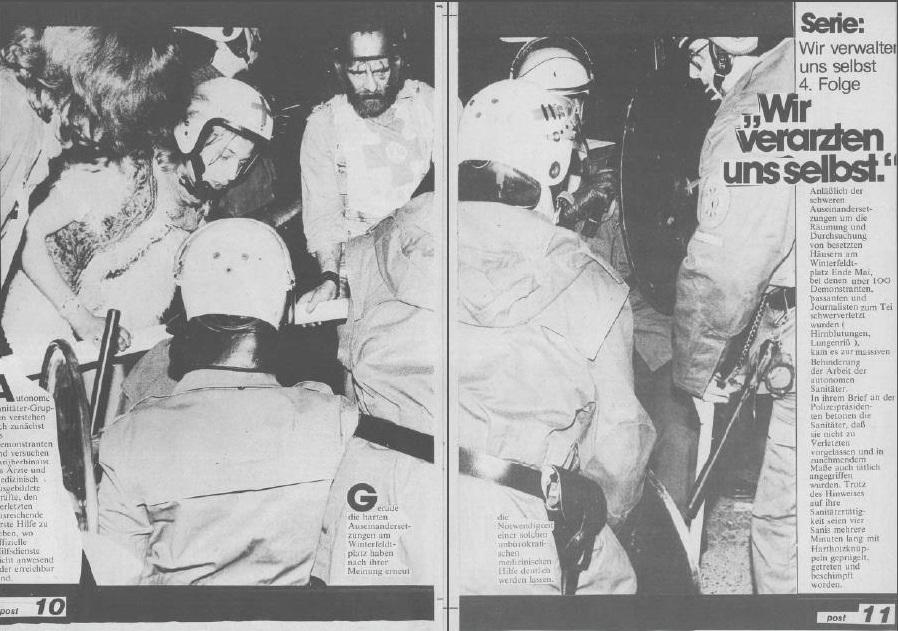 Aktuell wie vor 35 Jahren - eine Anleitung in der Instand Besetzer Post von 1981 wie man erste Hilfe leistet und was in einer Sani-Tasche bei Demonstrationen nicht fehlen darf.
